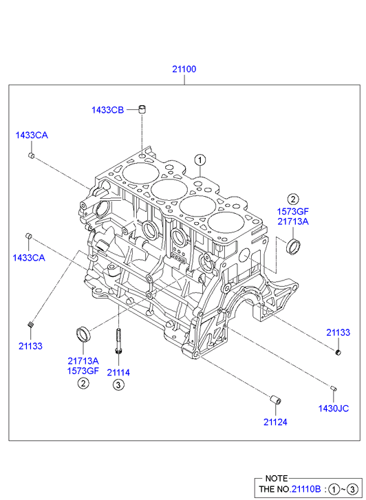 (Робочий об'єм двигуна: 2000 CC) (Двигун: T/C INTER COOLER) блок циліндрів у зборі (Робочий об'єм двигуна: 2000 CC) (Двигун: MPI-DOHC) |