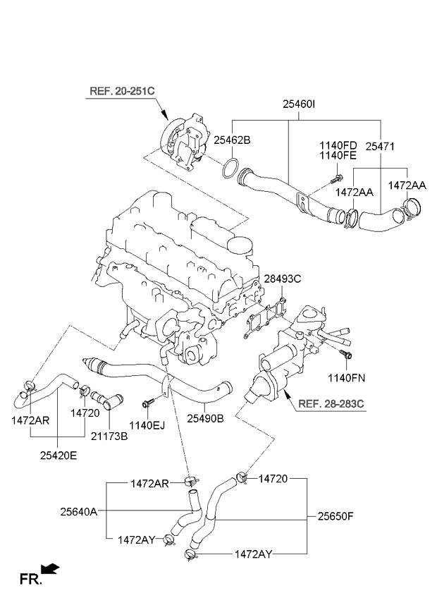 (Робочий об'єм двигуна: 2000 CC - R) Шланг та трубопровід охолоджуючої рідини (Робочий об'єм двигуна: 2200 CC - R) |