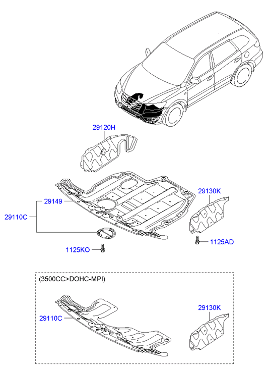 Захист двигуна правий (29120-2B000) Mobis Hyundai/Kia/Mobis '291202B000