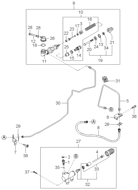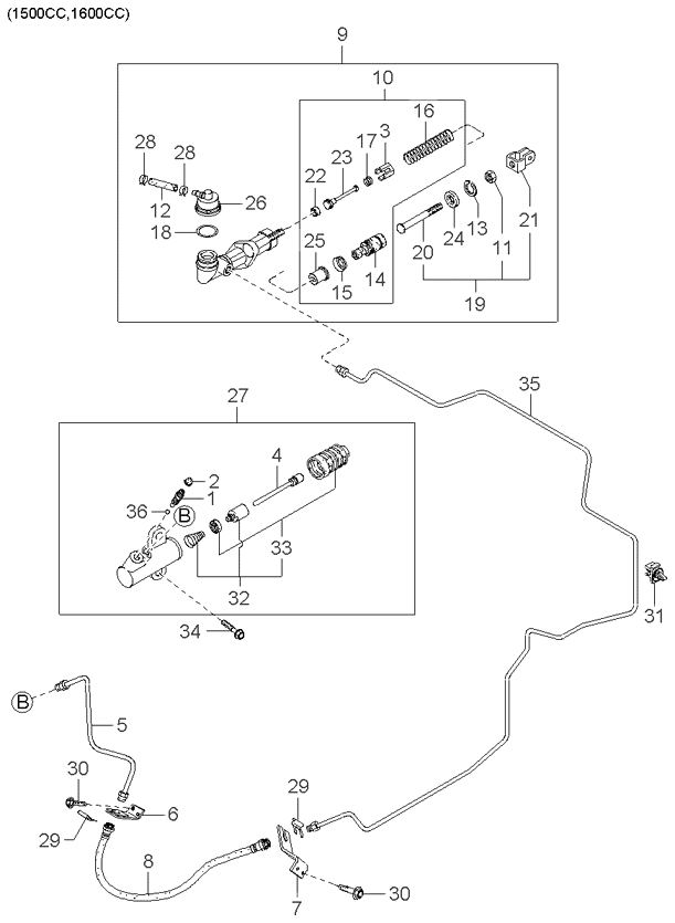 (Трансмісія: 5 SPEED MT 2WD) Робочий та головний циліндри гідроприводу зчеплення (Трансмісія: 5 SPEED MT 2WD) |