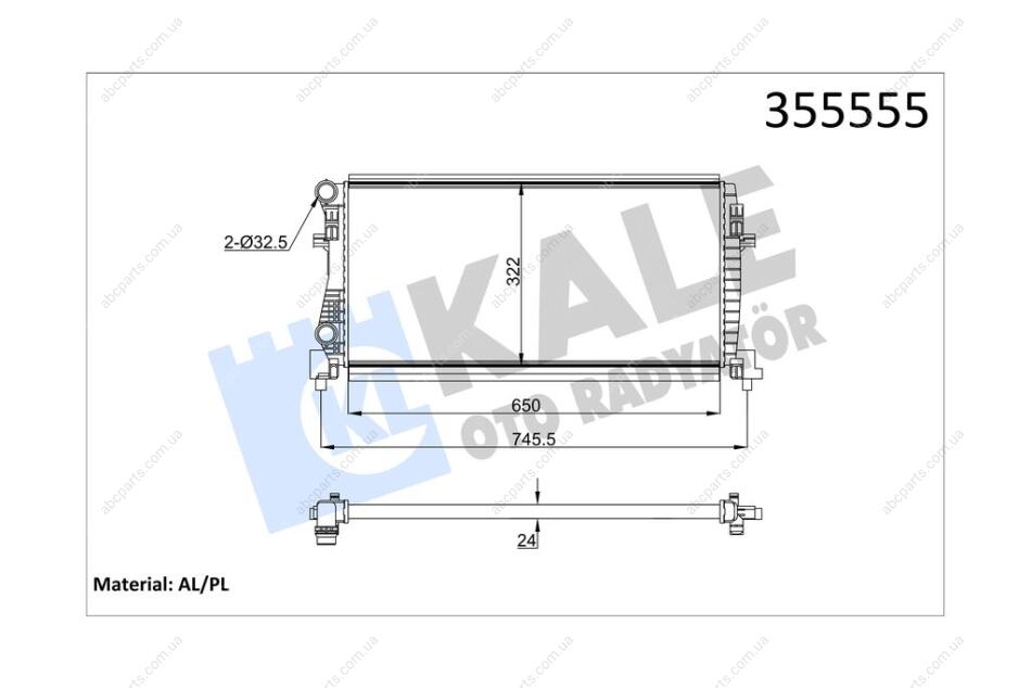 Радіатор охолодження двигуна Audi A3 (12-)/Seat Leon (13-)/Skoda Octavia III (13-)/VW Golf (13-) 1.2 TSi, 1.6 TDi OTO RADYATOR Kale 355555