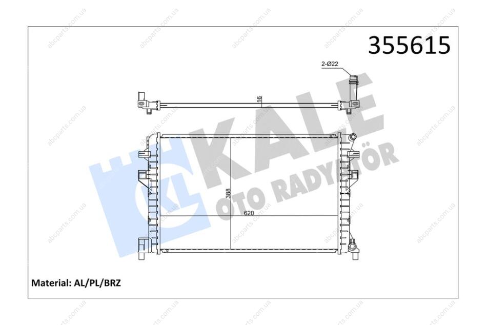 Радіатор охолодження інтеркулера (паяний) Audi A3 (12-)/Seat Leon (13-)/Skoda Octavia III (13-)/VW Passat, Tiguan (12-) OTO RADYATOR Kale 355615