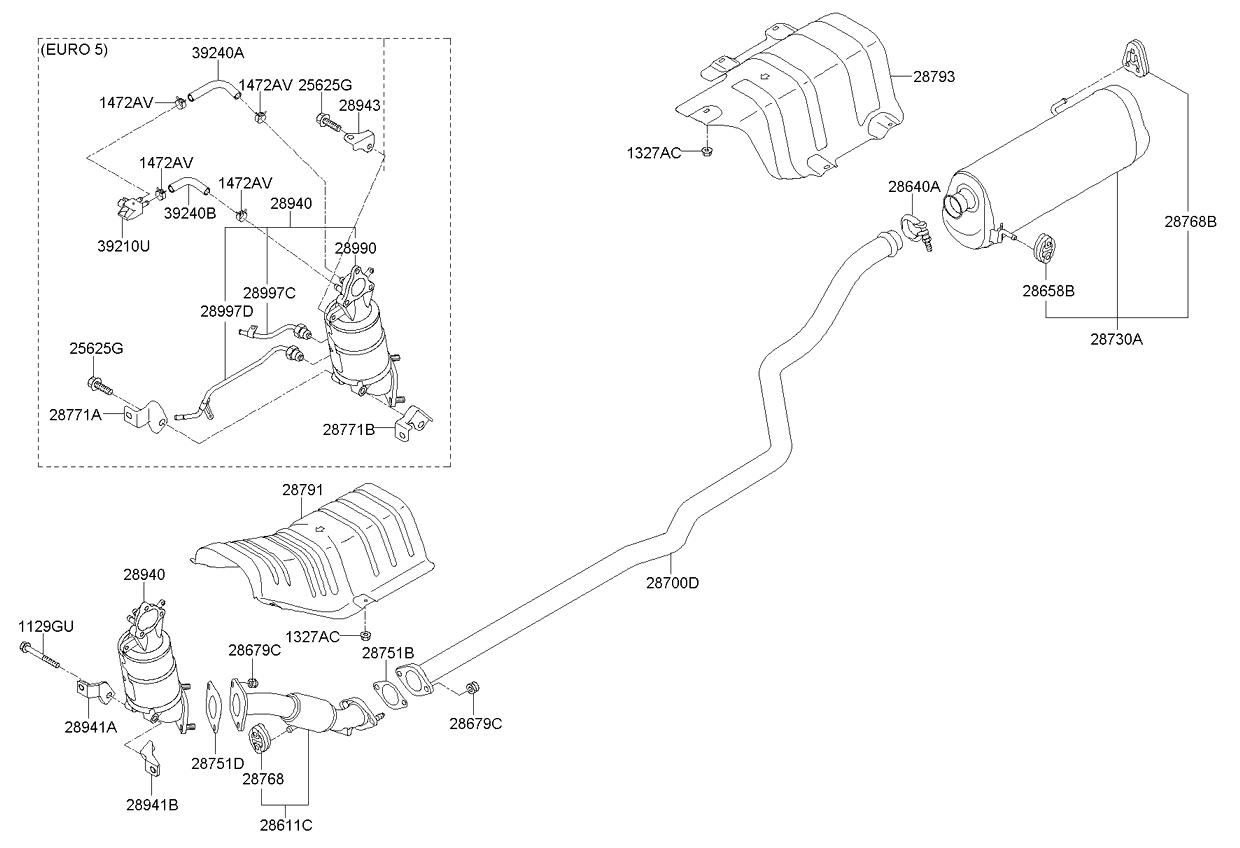 (Робочий об'єм двигуна: 2000 CC - NU) вихлопна труба (Робочий об'єм двигуна: 1700 CC - U2) вихлопна труба (Робочий об'єм двигуна: 1600 CC - GAMMA) |