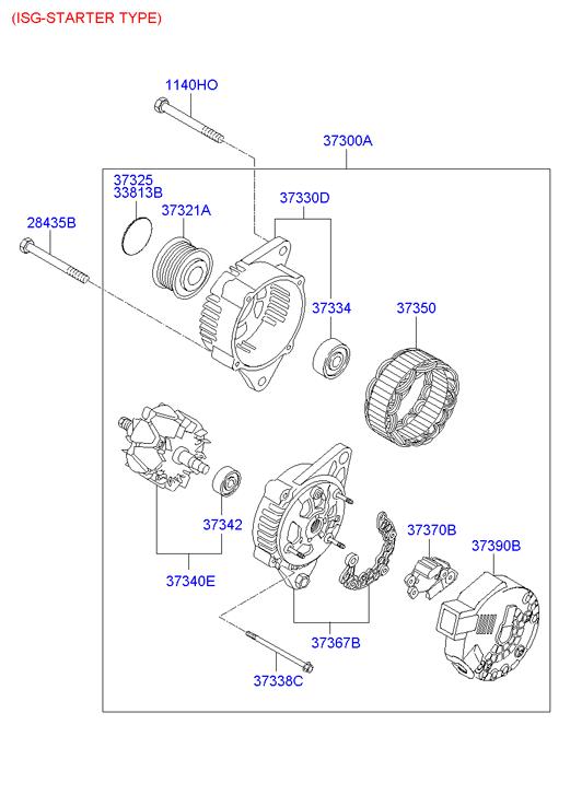 (Робочий об'єм двигуна: 1600 CC - GAMMA) генератор у зборі (Робочий об'єм двигуна: 2000 CC - BETA) |