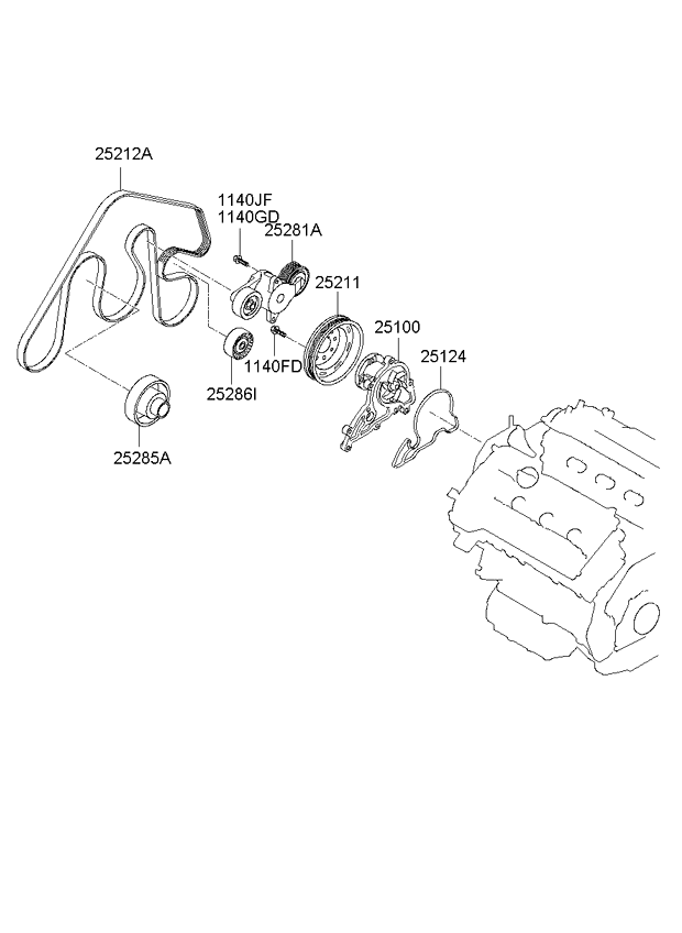(Рабочий объем двигателя: 2400 CC - THETA 2) насос охлаждающей жидкости (Рабочий объем двигателя: 3000 CC - LAMBDA 2) |
