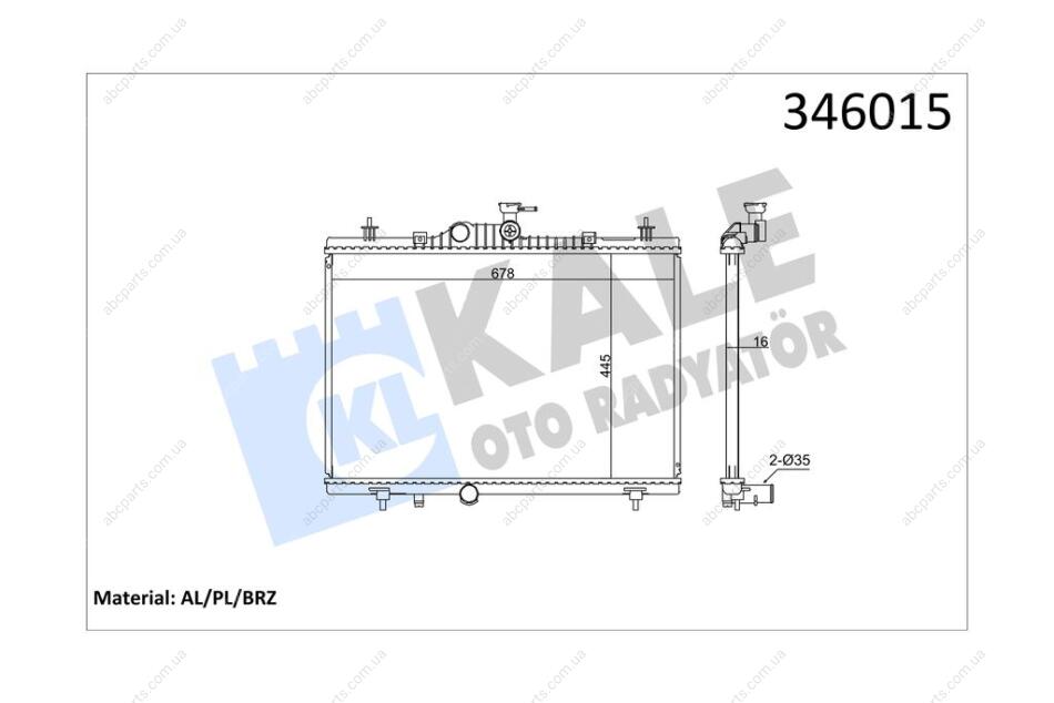 Радиатор охлаждения двигателя (паяный) Renault Koleos (08-) 2.0 DCi, 2.0i, 2.5i OTO RADYATOR Kale 346015