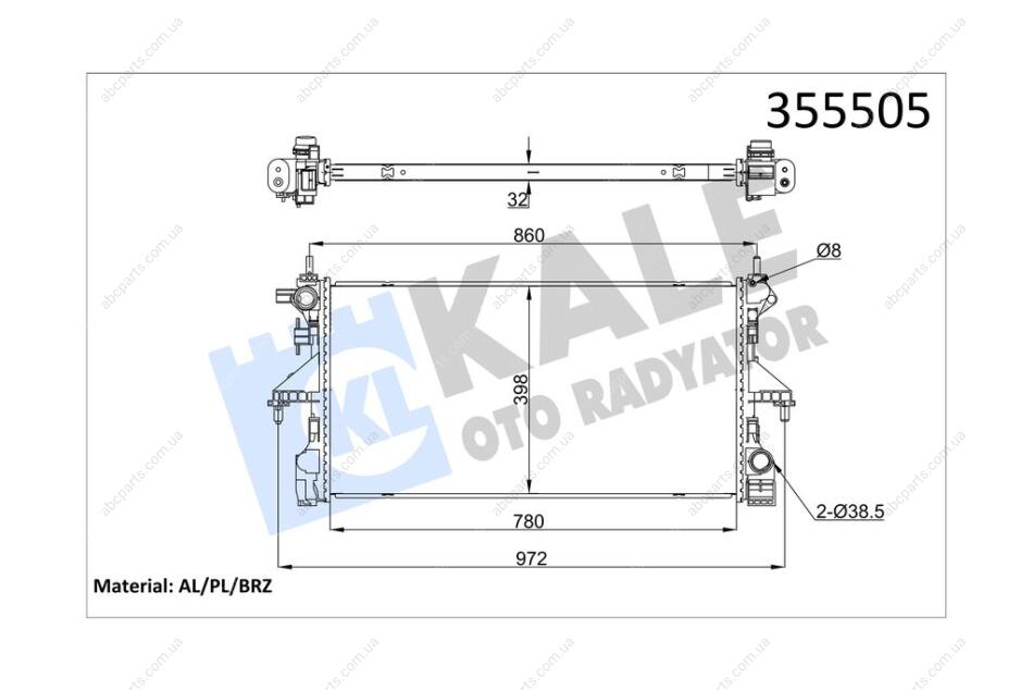 Радиатор охлаждения двигателя (паяный) Citroen Jumper (06-)/Peugeot Boxer (06-)/Opel Movano (22-) 2.0 Hdi, 2.2 Hdi OTO RADYATOR Kale '355505