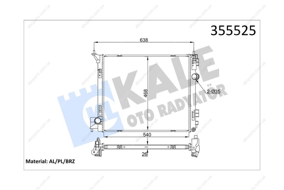 Радиатор охлаждения двигателя (паяный) Nissan X-Trail (14-)/Renault Koleos (16-) 1.6 dCi, 2.0 dCi OTO RADYATOR Kale 355525