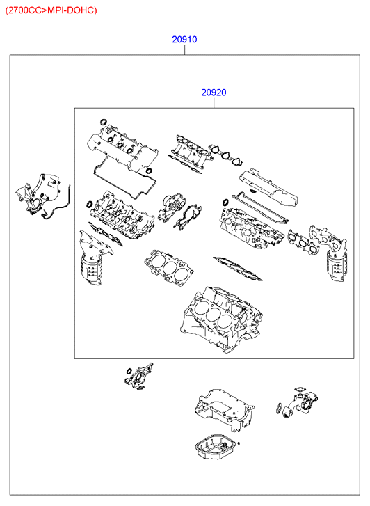 Прокладки двигателя к-кт Santa Fe 2.0d (00-)/Tucson 2.0d (04-) (20910-27F00) KAP KAP (KoreaAutoParts) KM0400646MT