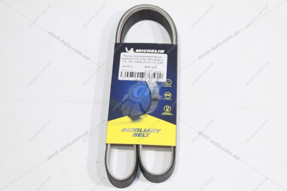 Ремінь поліклиновий (тефлон) Skoda Ocatvia II 1.6, 2.0d/ VW Caddy II 1.4, 1.6i, Caddy (III,IV) 1.6, 2.0d MICHELIN '6PK1070