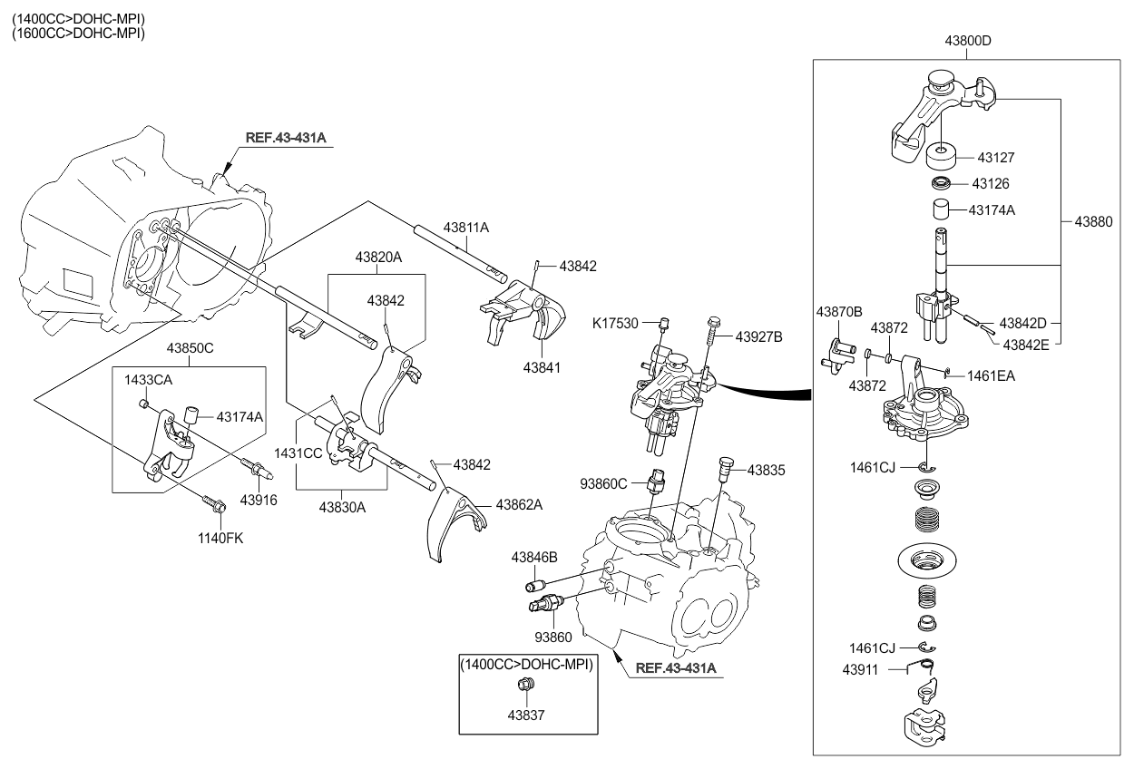 (Рабочий объем двигателя: 2000 CC)(Двигатель: T/C INTER COOLER)(Трансмиссия: 5 SPEED MT 2WD) рычаг мкп (Рабочий объем двигателя: 2000 CC)(Двигатель: MPI-DOHC)(Трансмиссия: 5 SPEED MT 2WD) |