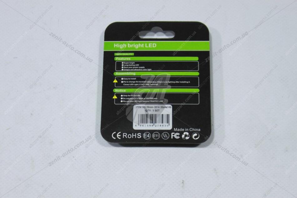 Лампа світлодіодна C5W 10W Festoon 12V SV8.5 1,8W 600Lm (39x13mm) (Yes canbus) (кратно 2) (салон, подс.ном.) WANLANDA '39MM301430SMDHB