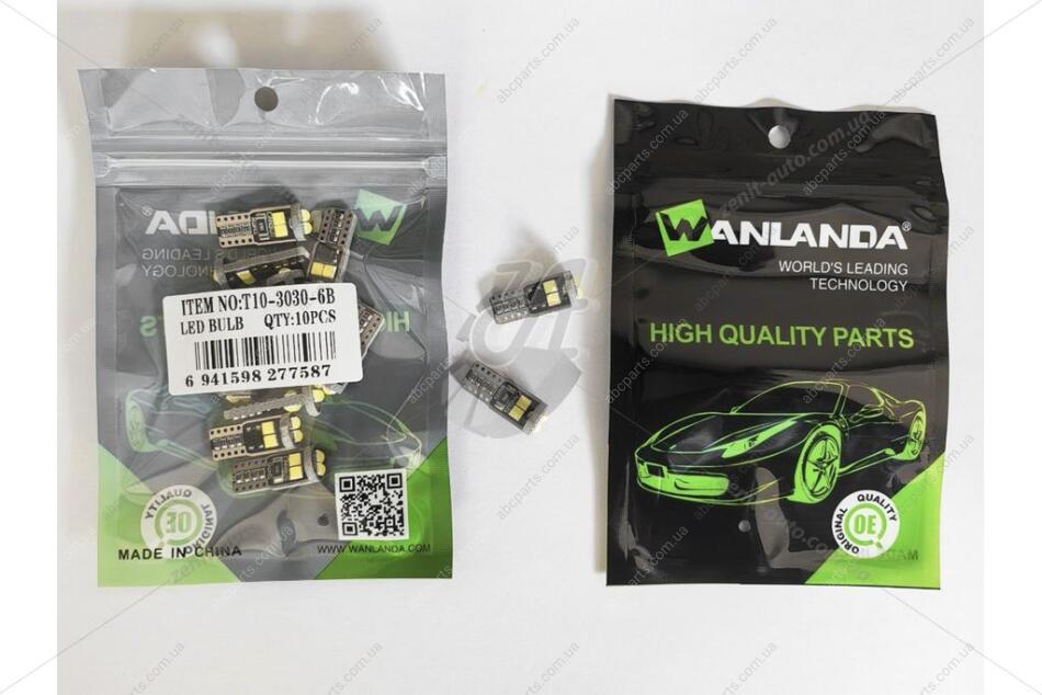 Лампа светодиодная T10 12V 1,32W 300Lm (9x24,5mm)(No canbus) (кратно 10) WANLANDA 'T1030306B