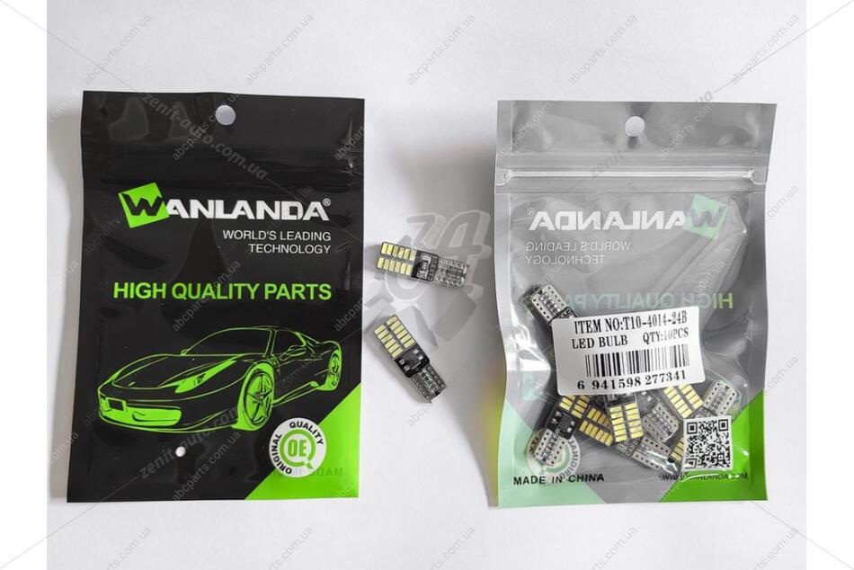 Лампа светодиодная T10 12V 1,44W 576Lm (10x30mm)(No canbus) (кратно 10) WANLANDA 'T10401424B